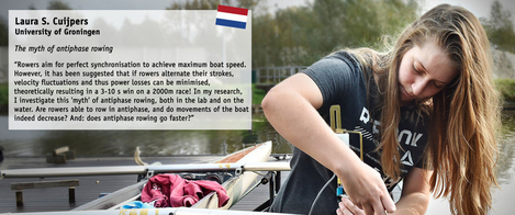 Laura Cuijpers is ook één van de deelnemers. Op 21 november (19.30-22.00 uur) gaat ze in haar praatje meer vertellen over haar onderzoek naar een ‘mythe’ in het roeien. Is het nou sneller om synchroon te roeien, of kun je de roeislagen beter afwisselen?